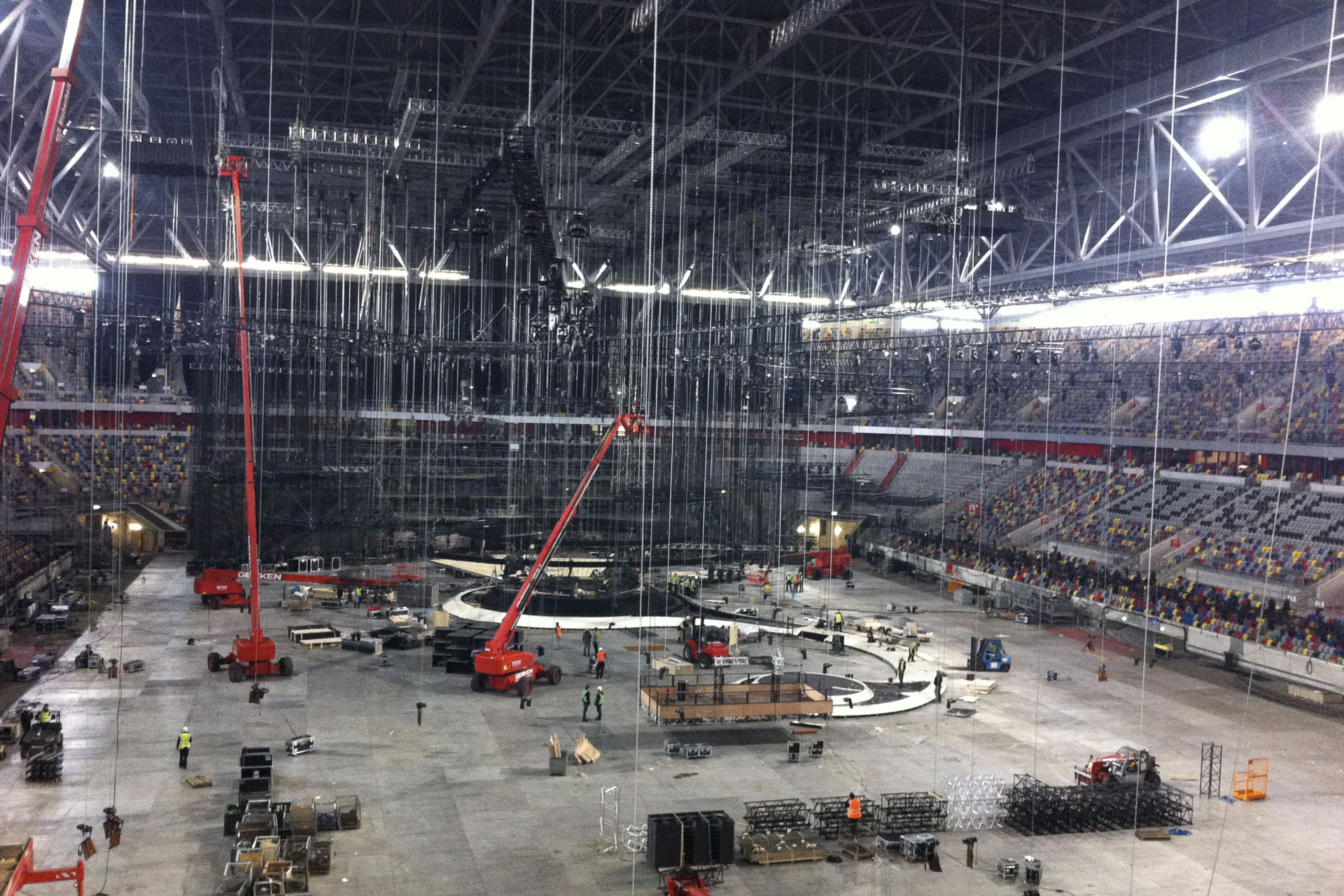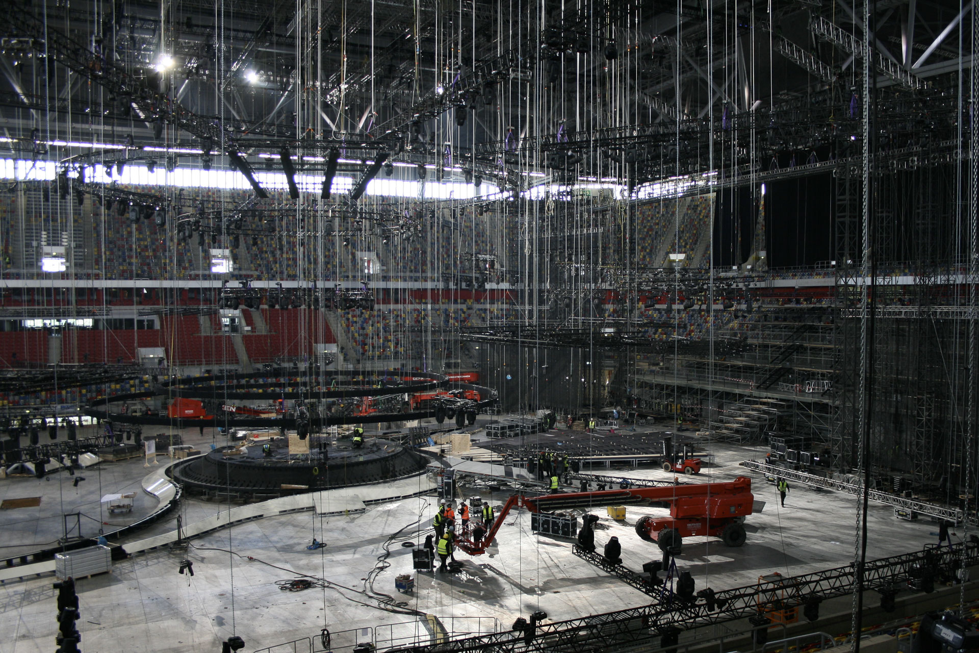 Core of the presentation was a stage with a diameter of 32 meters, flanked by a moveable big LED wall (60 meters wide and 18 meters high). Thanks to 92 Movecat VMK-S-500 24-24 chain hoists with 2 system controllers it was a perfect show! They all were positioned and controlled accurately to the millimeter by a computer-based controller.