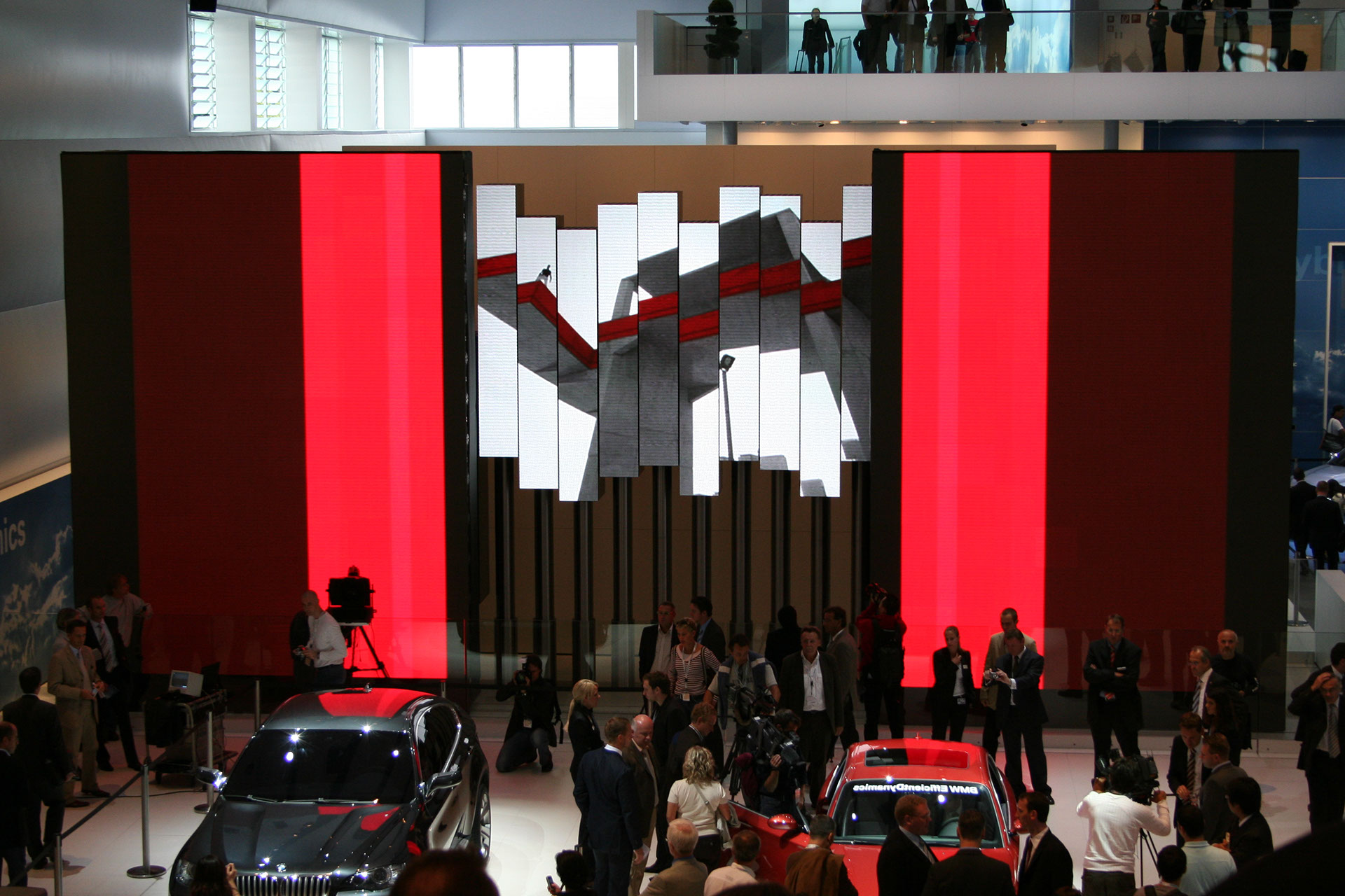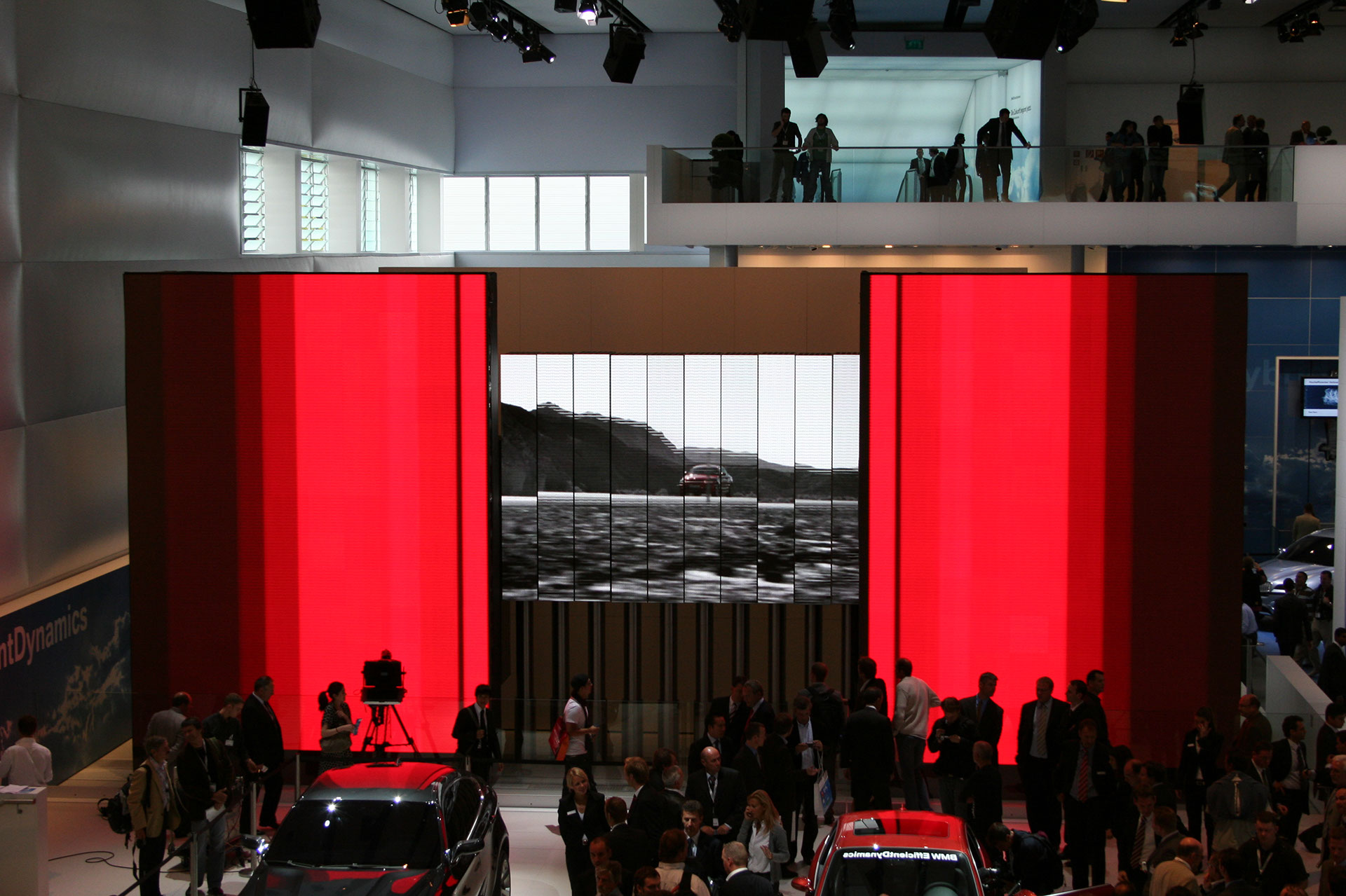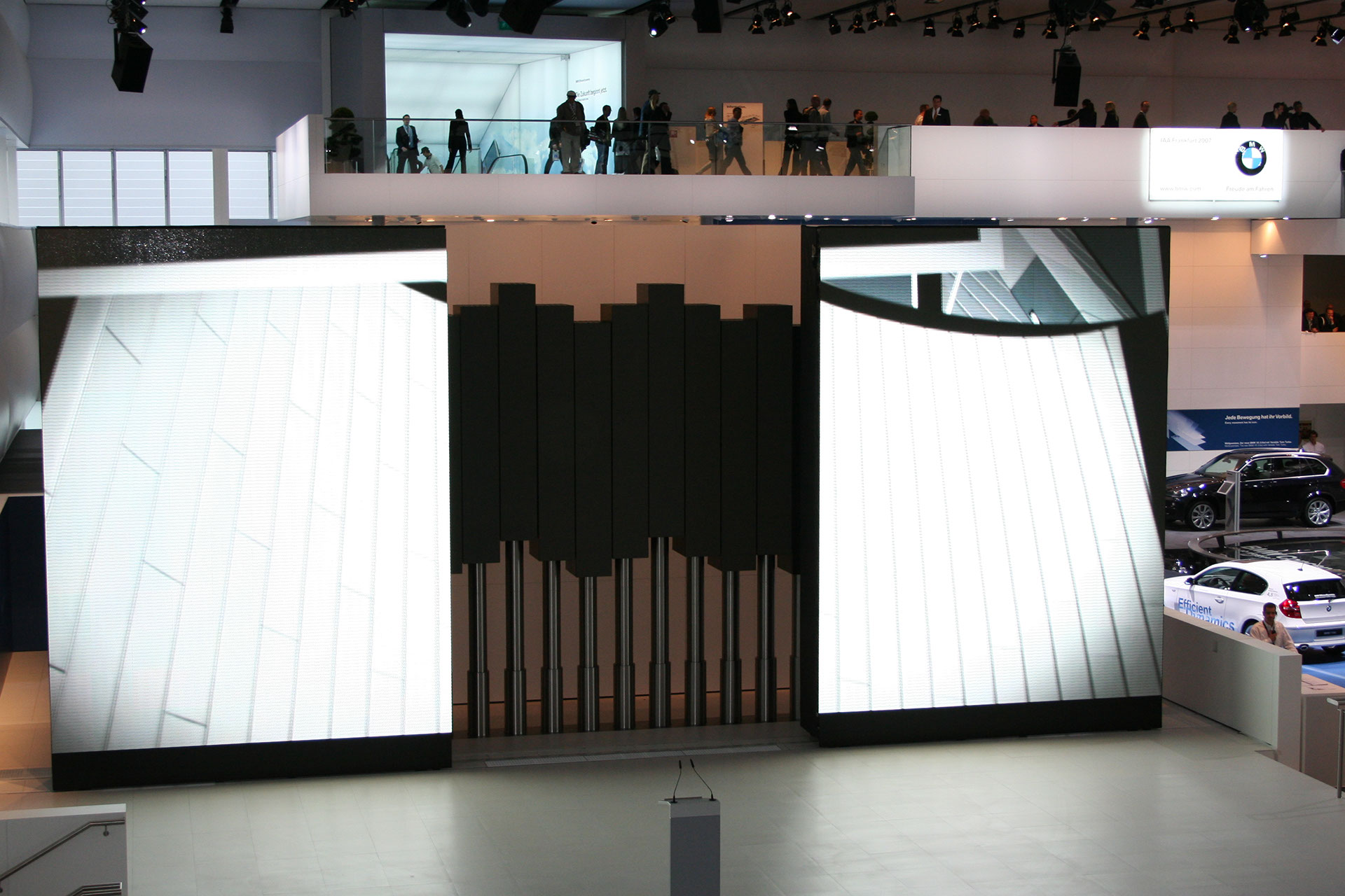 In nur drei Monaten hat Stage Kinetik ein bisher weltweit einmaliges Hubsystem für fahrbare LED- und Lichtwände im Rahmen des BMW-Standes auf der IAA 2007 in Frankfurt realisiert.